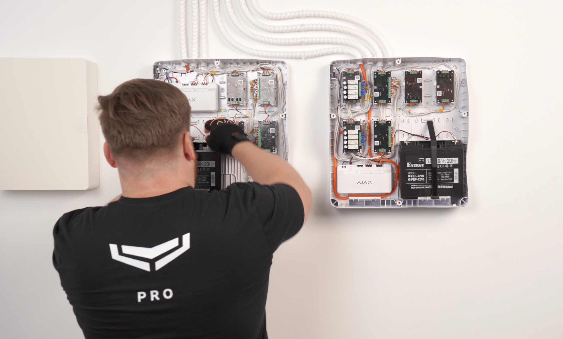 Ajax je vybaven záložními bateriemi, které zajistí jeho provoz i v případě výpadku napájení. Systém vás také okamžitě upozorní na jakýkoliv problém s napájením prostřednictvím mobilní aplikace.